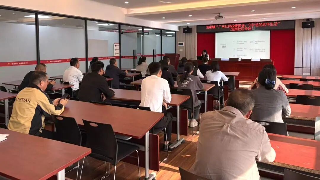 11月25日下午,中山市人力资源和社会保障局坦洲分局走进坦南社区,开展“广东社保政策宣讲:守护您的老年生活”专题活动,旨在提升居民对社保政策的认知,助力群众科学规划老年生活,增强社会保障获得感。